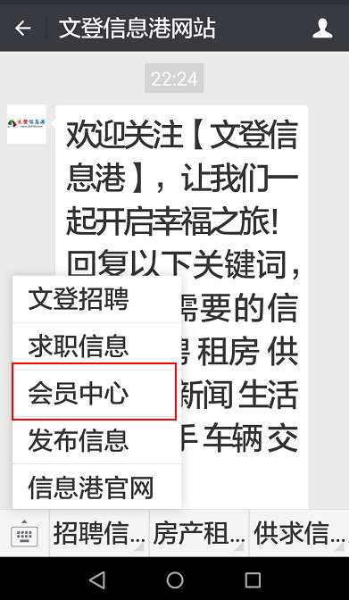 (2)點(diǎn)擊文登信息港微信平臺的菜單,如下圖